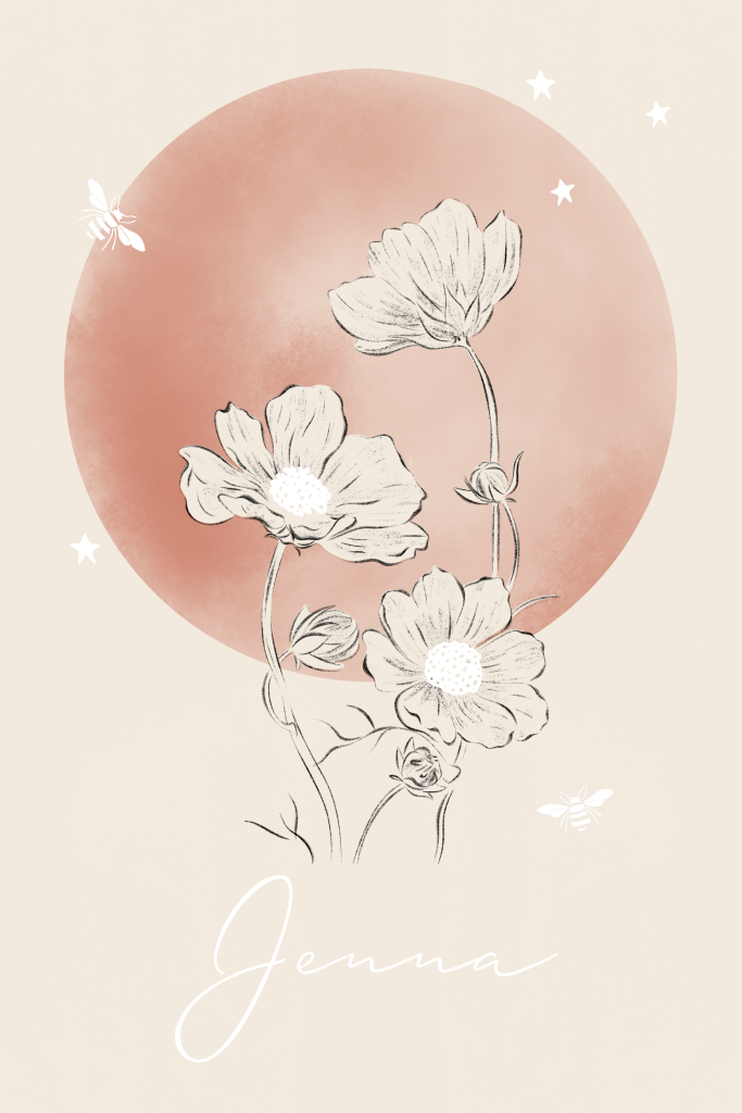 Een prachtig watercolour geboortekaartje in zacht roze kleuren. De naam en bijtjes zijn gedrukt in roségoudfolie en geven het kaartje een stijlvolle uitstraling. Daarnaast heeft dit kaartje ronde hoeken. Pas het geboortekaartje naar wens aan in onze online editor.