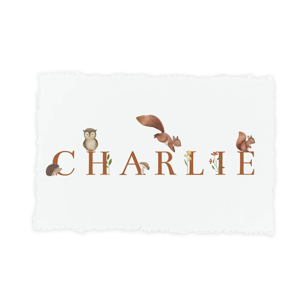 Wat een lief geboortekaartje! Het kaartje heeft een witte achtergrond met schattige bosdieren rondom de naam van jouw baby. Het kaartje heeft een geschept papier look die je zelf aan het kaartje geeft. Al onze kaartjes met handgeschept papier vind je hier. Let hierbij op de volgende dingen: