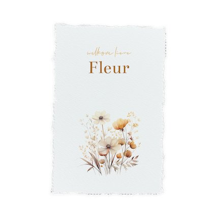 Wat een lief geboortekaartje! Dit kaartje heeft een stijlvolle en minimalistische uitstraling met de illustraties van prachtige bloemen. Het kaartje heeft een geschept papier look die je zelf aan het kaartje geeft.