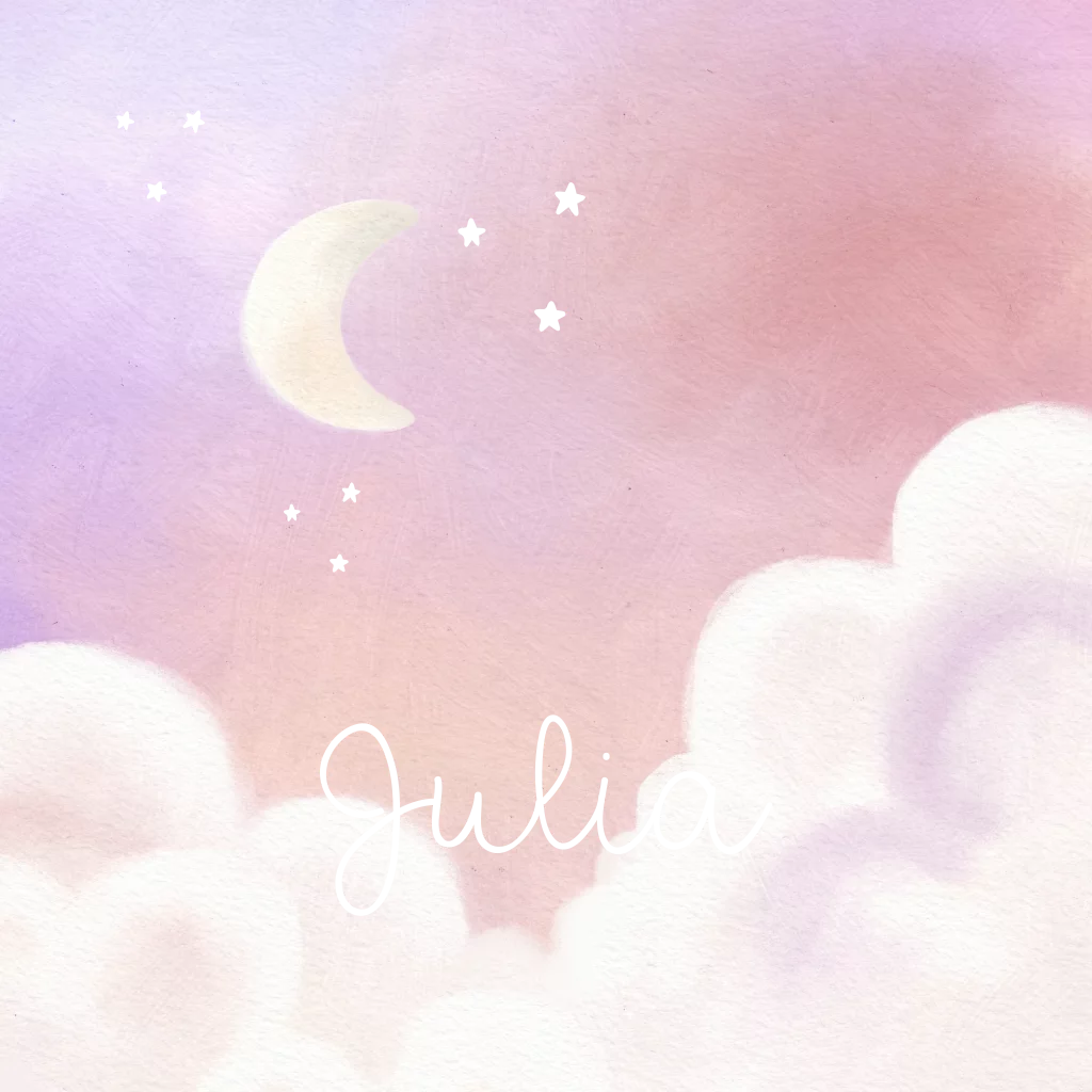 Een vierkant roze geboortekaartje voor jouw dochter. Het kaartje heeft een roze achtergrond met daarop lieve wolkjes en een maantje. De naam wordt gedrukt in goudfolie.
