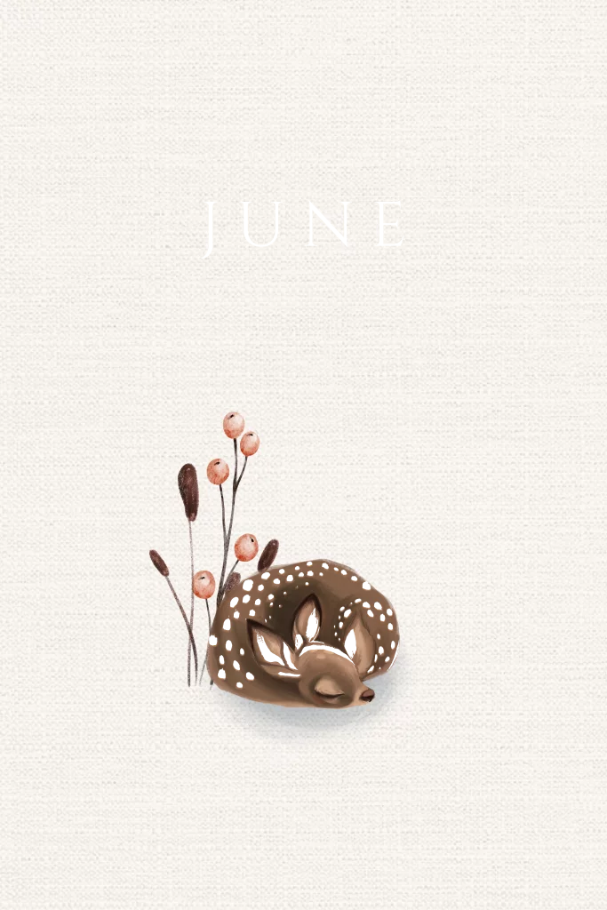 Een lief geboortekaartje voor jouw kindje. Het geboortekaartje heeft een zachte achtergrond met daarop een slapend hertje naast wat vrolijke bloemen. De naam wordt gedrukt in roségoudfolie. Pas het ontwerp naar wens aan in onze online editor.