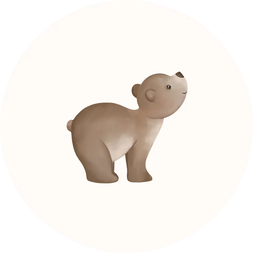 Een lieve sluitsticker voor bij jouw geboortekaartje. De sticker heeft een gebroken witte achtergrond met daarop een lief beertje. Pas het ontwerp naar wens aan in onze online editor.