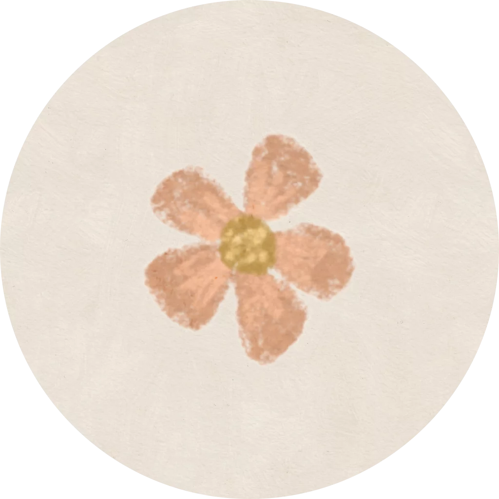 Een vrolijke sluitsticker voor bij het geboortekaartje. De sticker heeft een beige achtergrond met daarop een roze bloemetje.