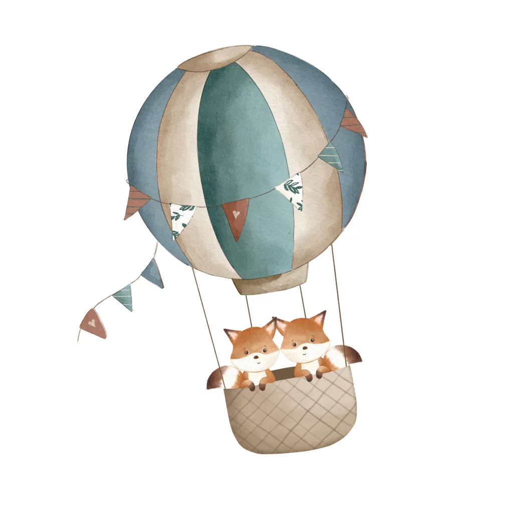 Een vrolijke sluitsticker bijpassend bij het geboortekaartje. De sticker heeft een donkerblauwe achtergrond met daarop een lieve illustratie van twee vosjes in een luchtballon. De sticker kan je in onze online editor zelf aanpassen.