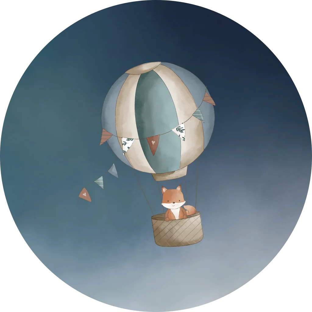 Een vrolijke sluitsticker bijpassend bij het geboortekaartje. De sticker heeft een donkerblauwe achtergrond met daarop een lieve illustratie van een vosje in een luchtballon. De sticker kan je in onze online editor zelf aanpassen.