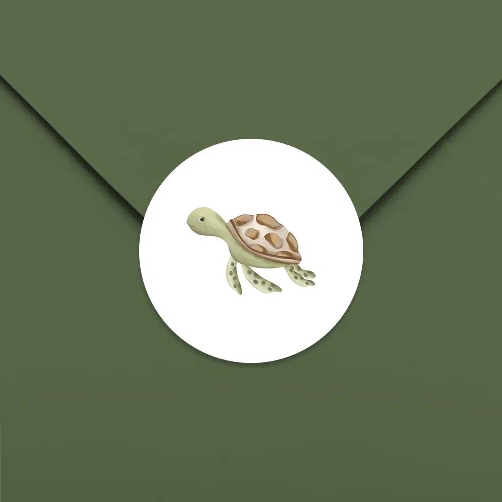 Maak het openen van de envelop een feestje met deze sluitsticker! De sticker heeft een witte achtergrond met de prachtige illustratie van een zeeschildpad. Pas de sticker helemaal naar wens aan in onze online editor.