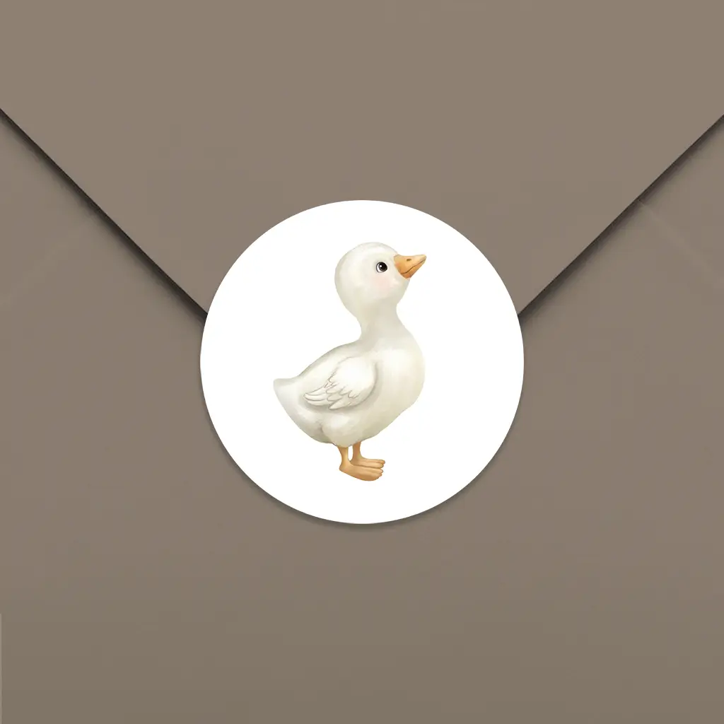 Schattige sluitsticker met de illustratie van een eendje. Deze sticker past perfect bij de Geboortekaart unisex met eendje op beige strepen.