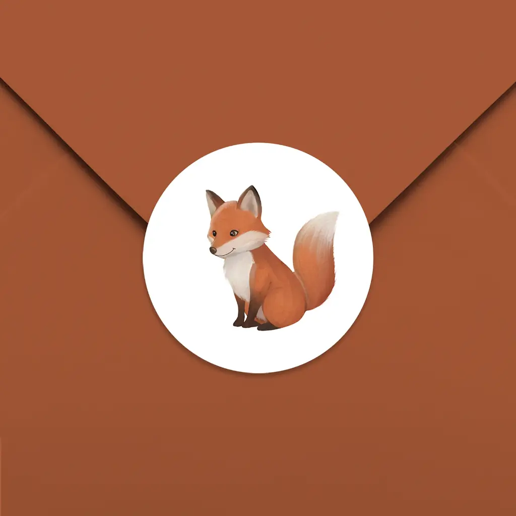 Versier de envelop van jullie geboortekaartje met deze bijpassende sticker. Deze sluitsticker heeft een witte achtergrond met daarop een vosje. Bewerk het ontwerp eenvoudig in de editor.
