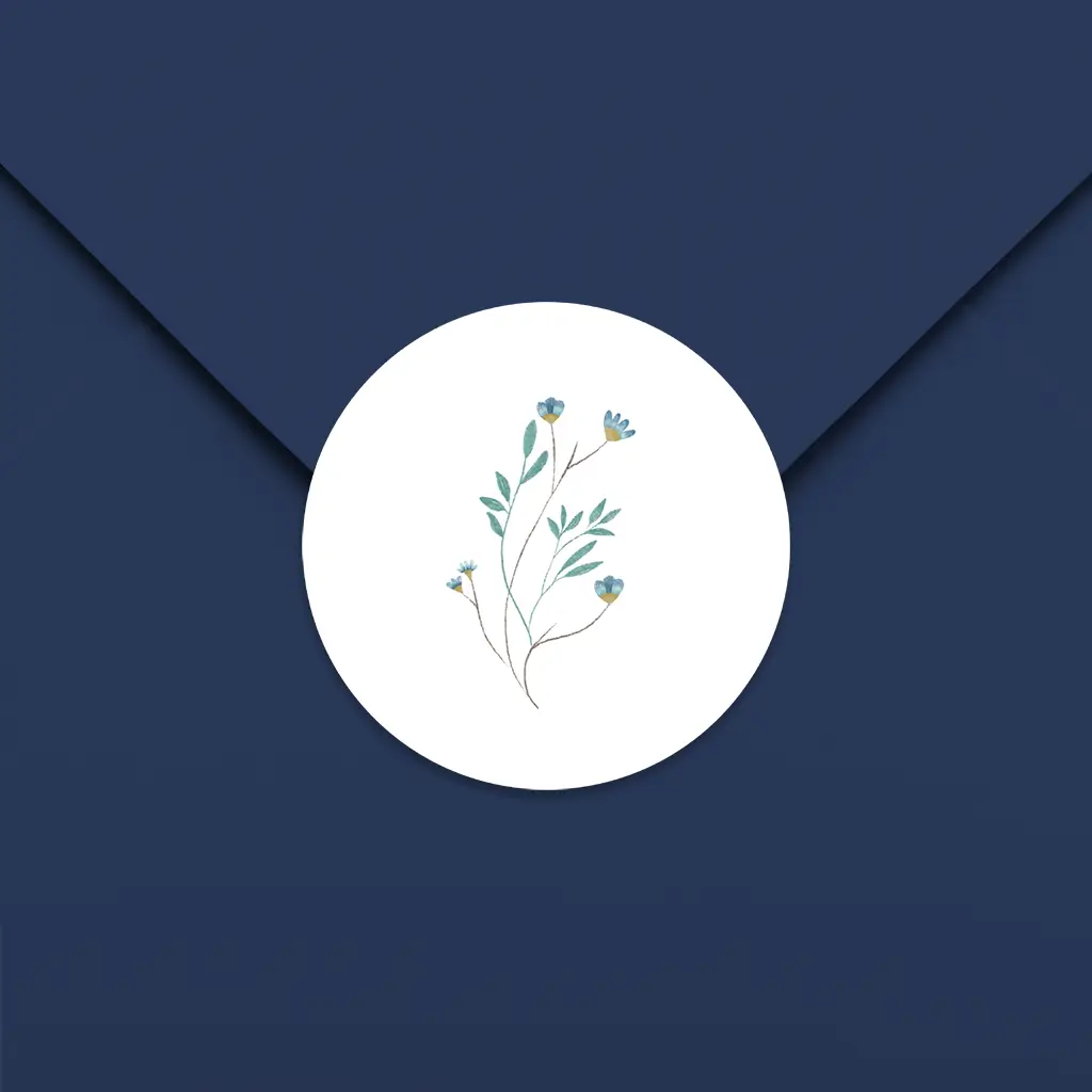 Een lieve sluitsticker passend bij het geboortekaartje. De sticker heeft een schattige tekening van blauwe bloemetjes. Pas het ontwerp naar wens aan in onze online editor.