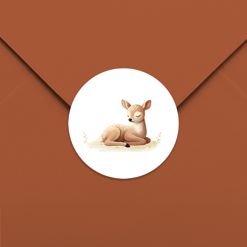 Wat een schattige sluitsticker voor op de envelop. Op de witte sticker zie je een lief hertje. De sticker kan je zelf nog naar wens aanpassen.