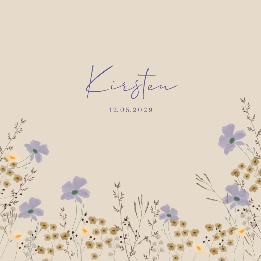 Een lieve poster in stijl van het geboortekaartje. Op de poster zijn prachtige kleurrijke bloemen te zien. Pas deze poster naar wens aan in de online editor.