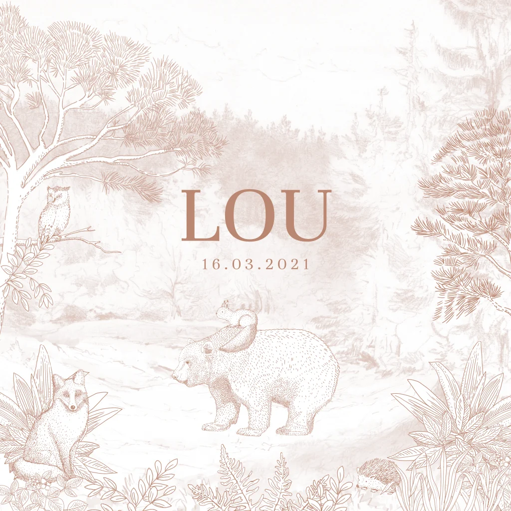 De bosdieren zijn prachtig getekend en krijgt een warme uitstraling door de kleur roestbruin.