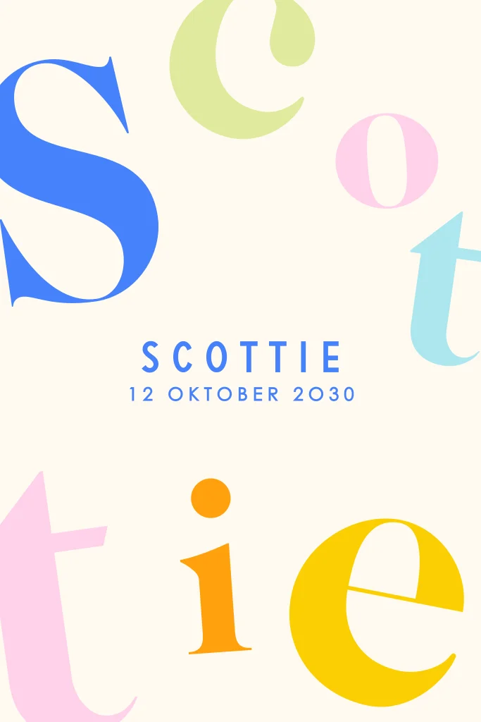 Wat een tof geboortekaartje voor jouw kindje. De letters zijn ontzettend kleurrijk en geven dit kaartje een vrolijke uitstraling. Het kaartje heeft een staand formaat en is naar wens volledig aan te passen.