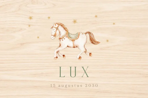 Hippe houten memorybox als kraamcadeau of voor je eigen kindje. Bewaar de meest dierbare herinneringen van de babytijd in deze prachtige memory box met een illustratie van een paardje in pasteltinten. Perfect als kraamcadeau of om zelf te gebruiken.
