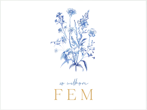 Dit is een mooi geboortekoffertje met de illustratie van een bos Delfts blauwe bloemen. De tekst, kleuren en afbeelding zijn in onze online editor te bewerken.