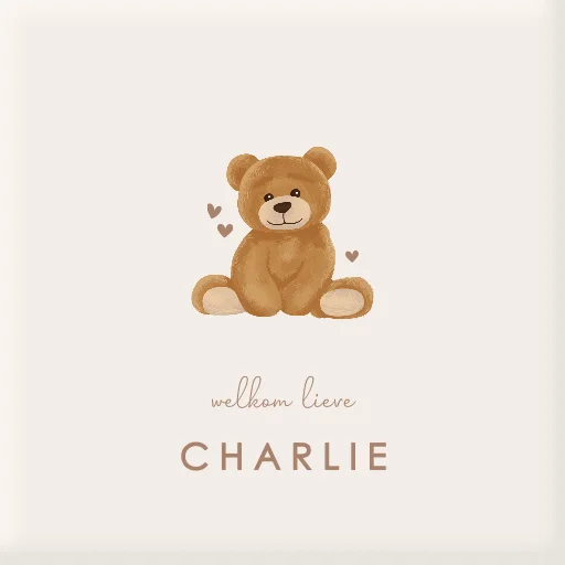 Een lief en stijlvol geboorte tegeltje. Het tegeltje heeft een creme witte kleur met daarop een schattig teddybeertje. Pas de tegel naar wens aan in onze editor.