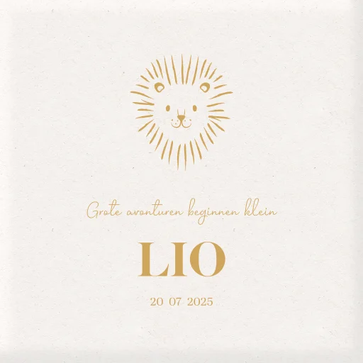 Een lief geboorte tegeltje met een leeuwenkopje. Onder het leeuwenkopje lees je de naam van het kindje. Pas het tegeltje naar wens aan in onze online editor.