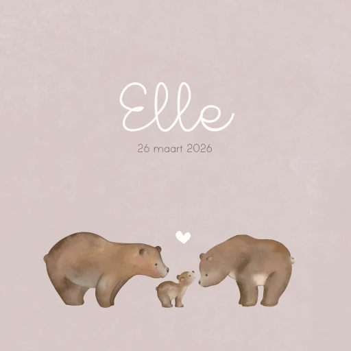 Lieve geboortetegel met roze watercolour en berenfamilie
