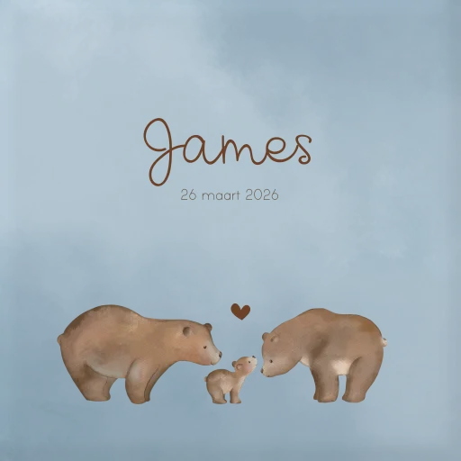Blauwe geboortetegel met watercolour en berenfamilie