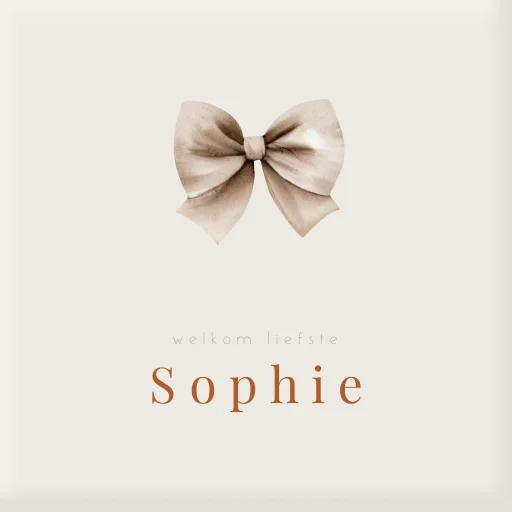 Een stijlvol geboortetegeltje voor je dochter in bruine en beige tinten. Het ontwerp heeft een beige achtergrond en een bruine illustratie van een strik. Pas het ontwerp naar wens aan in onze online editor.