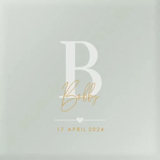 Een lief geboortetegeltje voor jouw kindje. Het ontwerp heeft een lichtgroene achtergrond met daarop een initiaal en sierletters. Pas het ontwerp naar wens zelf aan.