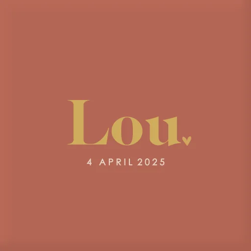 Een hip geboortetegeltje voor jouw kindje. Het tegeltje heeft een roestkleur achtergrond met daarop de naam van het kindje. Het ontwerp is naar wens aan te passen in onze online editor.