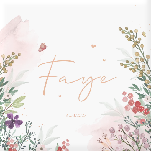 Wat een romantisch geboortetegeltje! Dit tegeltje heeft een roze watercolour achtergrond met daarop verschillende bloementjes en takjes. In het midden va de tegel staat de naam en geboortedatum. Pas de tegel naar wens aan.