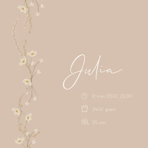 Een stijlvol en romantisch tegeltje om de geboorte aan te kondigen. Het tegeltje heeft roze achtergrond. Daarop zie je een bloemenslinger. Pas het ontwerp naar wens aan.