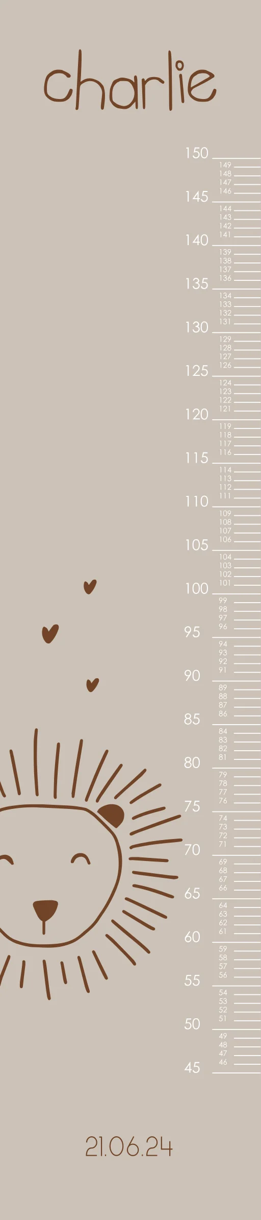Wat een leuke groeimeter! Naast heel handig staat deze meter ook superleuk in de kinderkamer. De groeimeter heeft een zandkleurige achtergrond met daarop een schattig leeuwtje. Pas de groeimeter helemaal naar wens aan in onze online opmaaktool.
