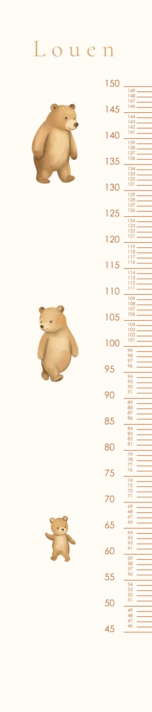 Wat een leuke groeimeter! Naast heel handig staat deze meter ook superleuk in de kinderkamer. Op de groeimeter staan lieve beertjes afgebeeld. Pas de groeimeter helemaal naar wens aan in onze online opmaaktool.