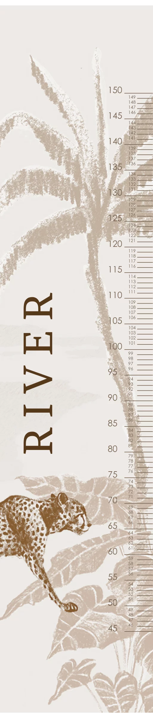 Wat een leuke groeimeter! Naast heel handig staat deze meter ook superleuk in de kinderkamer. De groeimeter heeft neutrale kleuren met een illustratie van een luipaard tussen de bomen en bladeren. Pas de groeimeter helemaal naar wens aan in onze online opmaaktool.