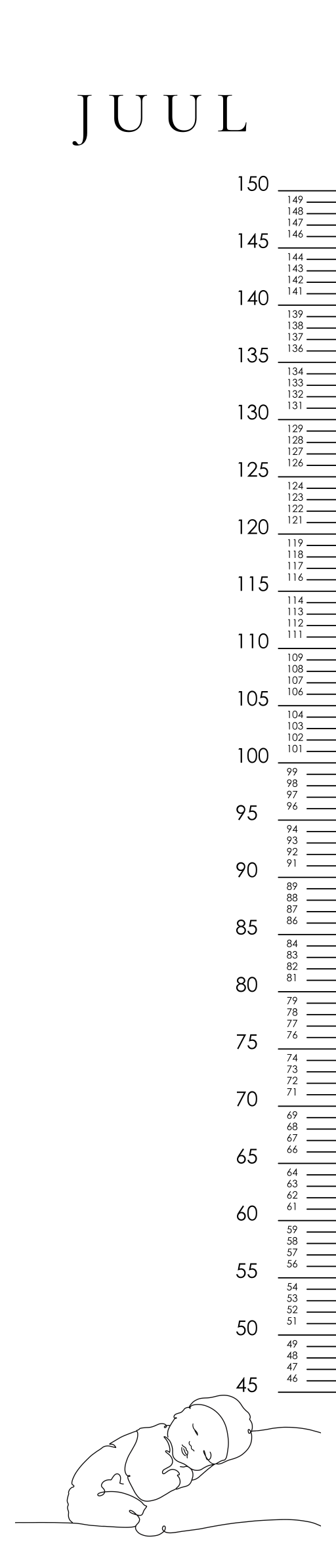 Wat een leuke groeimeter! Naast heel handig staat deze meter ook superleuk in de kinderkamer. Op de groeimeter staat een lijntekening van een baby. Pas de groeimeter helemaal naar wens aan in onze online opmaaktool. Daarnaast is het ook een uniek kraamcadeau!