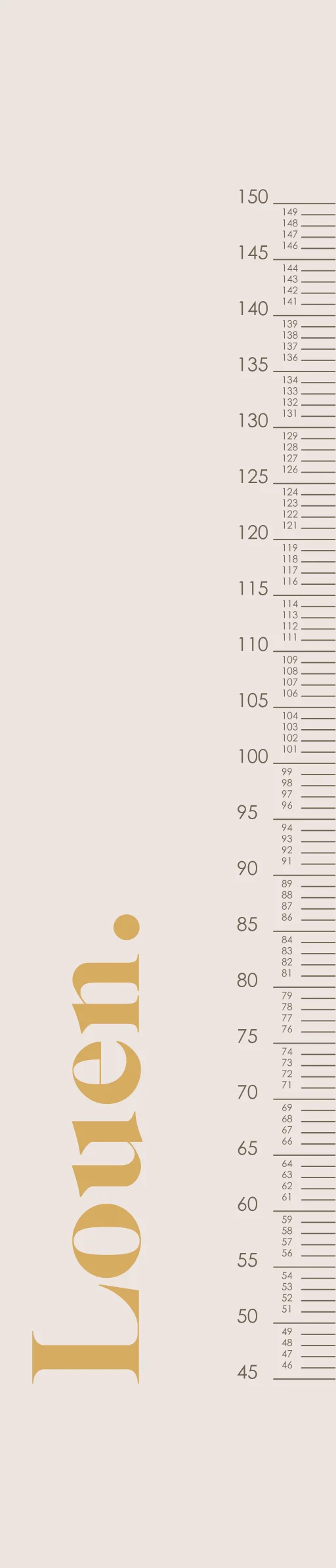 Wat een leuke groeimeter! Naast heel handig staat deze meter ook superleuk in de kinderkamer. De groeimeter heeft een lichte achtergrond met daarop de naam van jullie kindje in goudkleur. Pas de groeimeter helemaal naar wens aan in onze online opmaaktool.