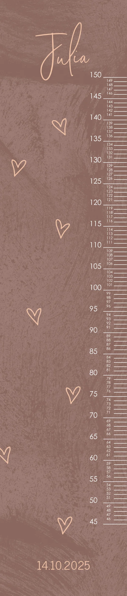 Wat een leuke groeimeter! Naast heel handig staat deze meter ook superleuk in de kinderkamer. De groeimeter heeft een oudroze velvet look achtergrond met daarop de naam van jullie kindje en kleine hartjes. Pas de groeimeter helemaal naar wens aan in onze online opmaaktool.