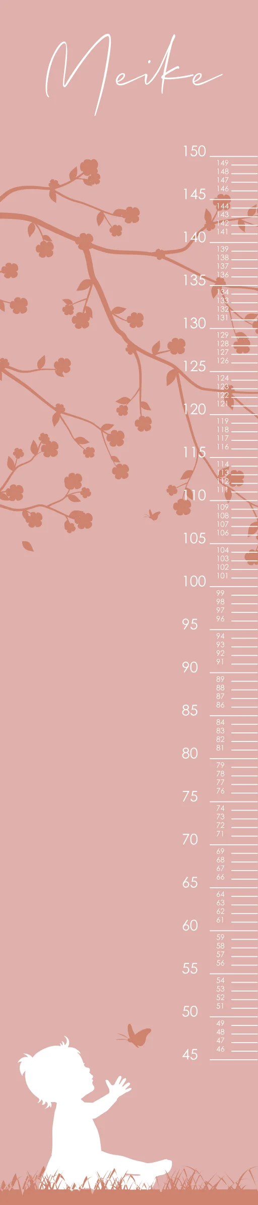 Wat een leuke groeimeter! Naast heel handig staat deze meter ook superleuk in de kinderkamer. De groeimeter heeft een roze achtergrond met daarop een silhouet van een meisje. Pas de groeimeter helemaal naar wens aan in onze online opmaaktool.