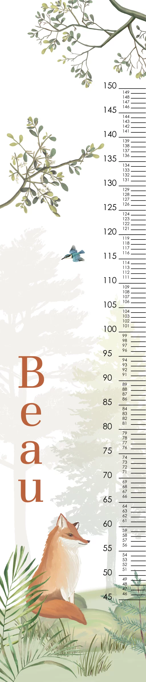 Een toffe groeimeter voor op de kinderkamer met bosdieren thema. Pas het ontwerp naar wens zelf aan.