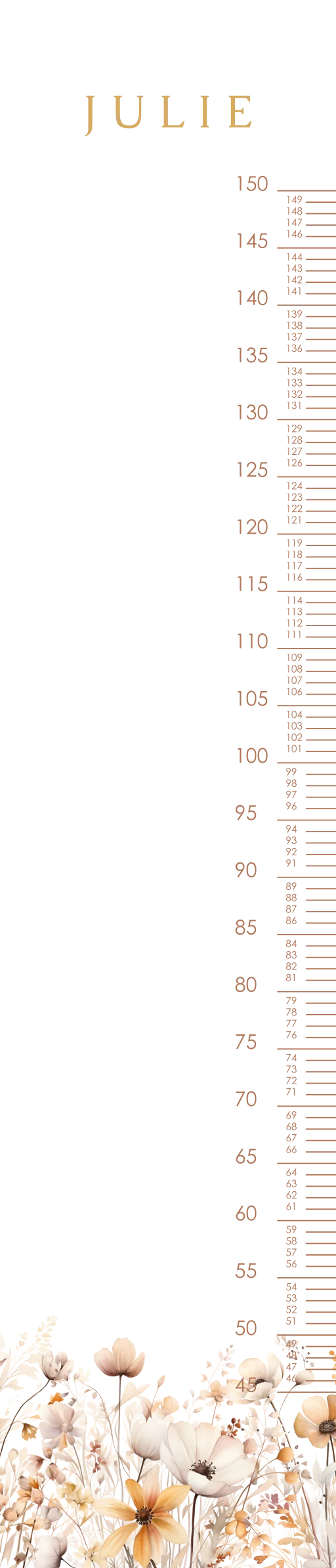 Wat een leuke groeimeter! Naast heel handig staat deze meter ook superleuk in de kinderkamer. Op de groeimeter staan prachtige illustraties van bloemen. Pas de groeimeter helemaal naar wens aan in onze online opmaaktool. Daarnaast is het ook een uniek kraamcadeau!