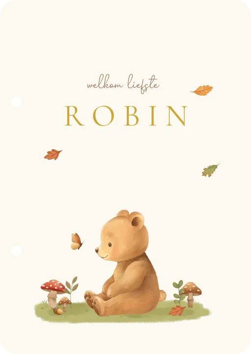 Wat een schattige bewaarbundel. Deze houten kaarten bewaarbundel heeft de illustratie van een lief beertje. De voorkant is naar wens nog aan te passen in onze online editor.