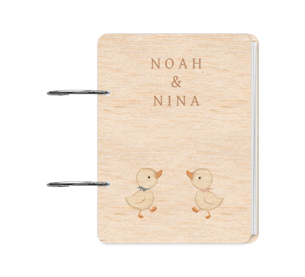 Houten bewaarbundel tweeling beigetinten met twee eendjes