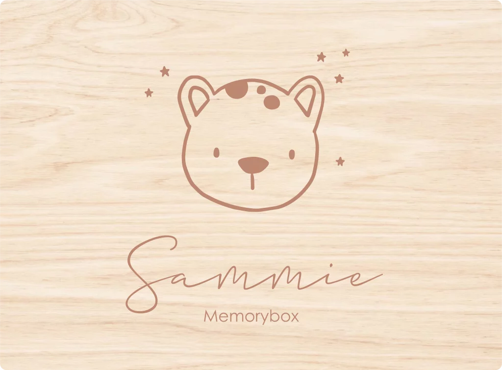 Een vrolijke memorybox om als cadeau te geven of voor je eigen kindje. Op de deksel van deze box zie je een schattige illustratie van een beertje omringd door sterretjes. Deze grenen houten box heeft een afmeting van 40x30cm breed en 13cm hoog en heeft een handgreep aan elke kant.