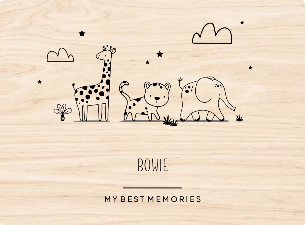 Memorybox baby met vrolijke jungledieren illustraties en naam