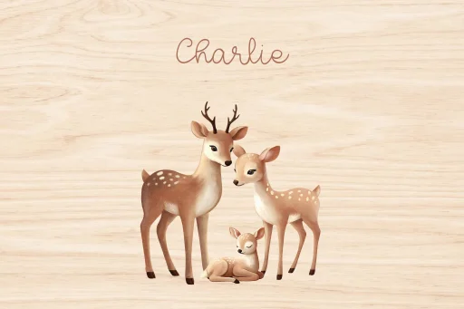 Een echt houten grenen memorybox voor jouw kindje of als kraamcadeau. De box een heeft minimalistisch ontwerp op de deksel met een hertengezin. De deksel van de box is naar wens te personaliseren in onze online editor.