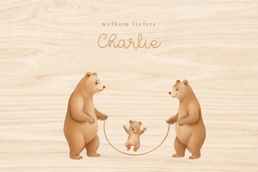 Schattige houten memorybox als kraamcadeau of voor je eigen kindje. Deze houten memorybox is perfect voor spulletjes uit de zwangerschaps- en babytijd. Op deze memorybox zie je de illustratie van een berenfamilie die samen touwtje springt. Pas de memorybox eenvoudig zelf aan.