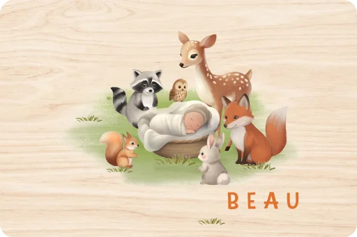 Een memorybox om alle herinneringen van de zwangerschap en/of babytijd te bewaren. Op het deksel zie je een illustratie van een baby in een mandje omringd door lieve bosdieren. Onder de afbeelding staat de naam van het kindje. Leuk voor jezelf om als kraamcadeau te geven. De box is naar wens te personaliseren in onze online editor. Deze grenen houten box heeft een afmeting van 40x30cm breed en 13cm hoog en heeft een handgreep aan elke kant.