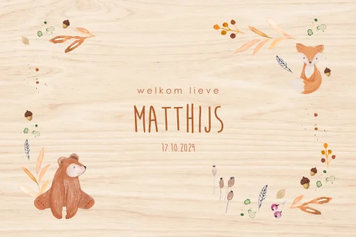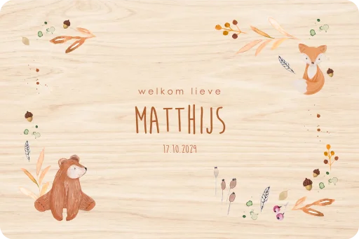 Een lieve houten memorybox als kraamcadeau of voor je eigen kindje. Deze houten memorybox is perfect voor spulletjes uit de zwangerschaps- en babytijd. Op deze memorybox zie je herfst illustraties en bosdieren. Pas de memorybox eenvoudig zelf aan.