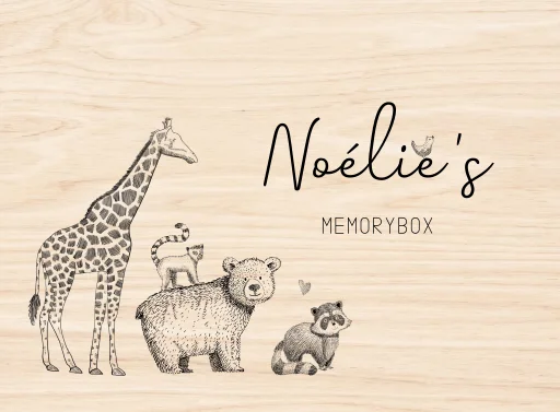 Stoere memorybox met een leuke illustratie van jungledieren op een rij, superleuk om hierin de eerste herinneringen aan jullie kindje te bewaren!