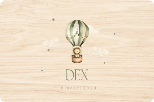 Hippe houten memorybox als kraamcadeau of voor je eigen kindje. Deze houten memorybox is perfect voor spulletjes uit de zwangerschaps- en babytijd. Op deze memorybox is een leeuwtje in een luchtballon te zien met daaronder de naam. Pas de memorybox eenvoudig zelf aan.