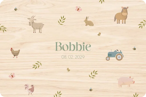 Hippe houten memorybox als kraamcadeau of voor je eigen kindje. Deze houten memorybox is perfect voor spulletjes uit de zwangerschaps- en babytijd. Op deze memorybox lees je de naam van het kindje en zie je vrolijke illustraties van boerderijdieren. Pas de memorybox eenvoudig zelf aan.