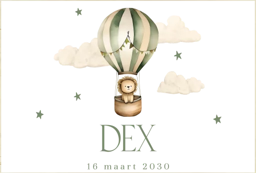 Presentatie doos voor je doopsuiker en later te gebruiken als opberg kist voor je kleintje. De doos is van echt hout gemaakt en heeft een schuifdeksel. Op de deksel zie je de naam van het kindje en een luchtballon met leeuwtje. Pas het ontwerp naar wens zelf aan.