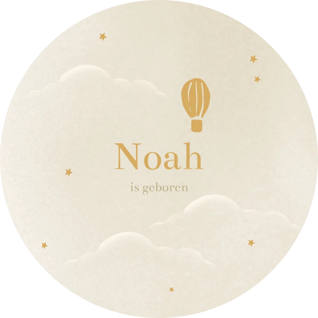 Dit is een originele manier om aan te kondigen dat je kleintje is geboren. Deze raamsticker heeft een beige achtergrond met de illustraties van een luchtballon, wolken en sterren. De sticker is naar wens aan te passen in onze online editor.